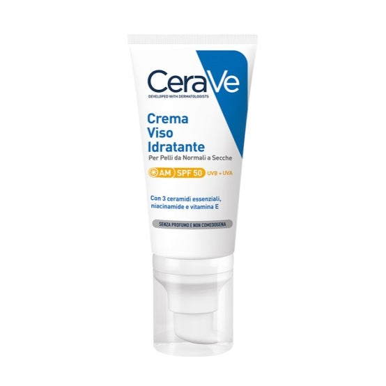Moisturizing Face Cream SPF 50 is a light and hydrating face cream for daily use, with high SPF 50 protection against UVB/UVA rays and 3 essential ceramides to help protect the skin's natural barrier and leave skin soothed and hydrated for up to 24 hours. Thanks to CeraVe's patented release system, MVE technology, this light cream offers a continuous release of ingredients, providing hydration for up to 24 hours. The skin is soothed and hydrated and appears balanced. Contains Vitamin E and Niacinamide, leaves the skin soothed and hydrated