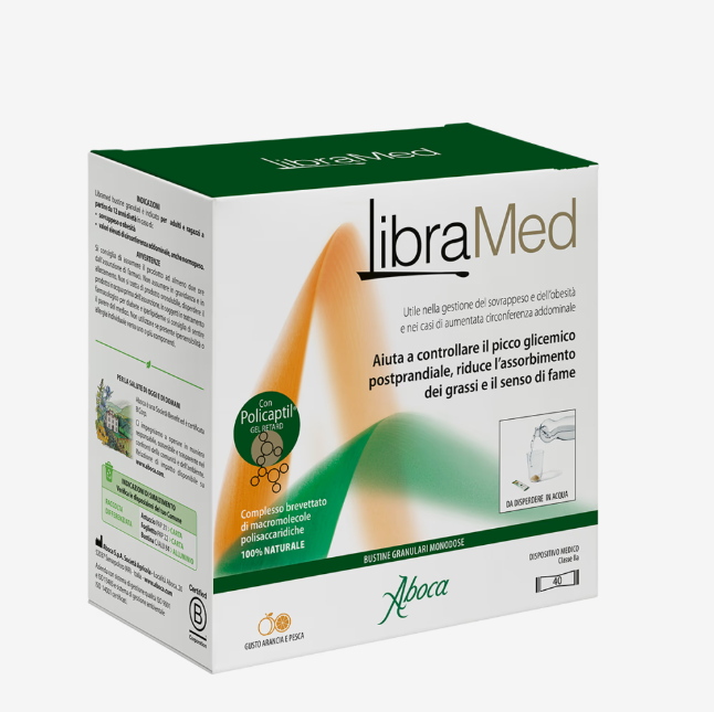 Libramed, grazie a Policaptil Gel Retard®, agisce a livello intestinale formando un gel altamente viscoso che favorisce il controllo del picco glicemico postprandiale, riducendo la quantità e la velocità di assorbimento dei carboidrati (effetto retard).