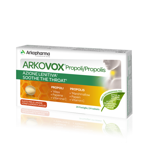 Arkovox® Propoli pastiglie è un integratore alimentare con edulcoranti a base di Altea, Propoli, Vitamina C e Papaina.