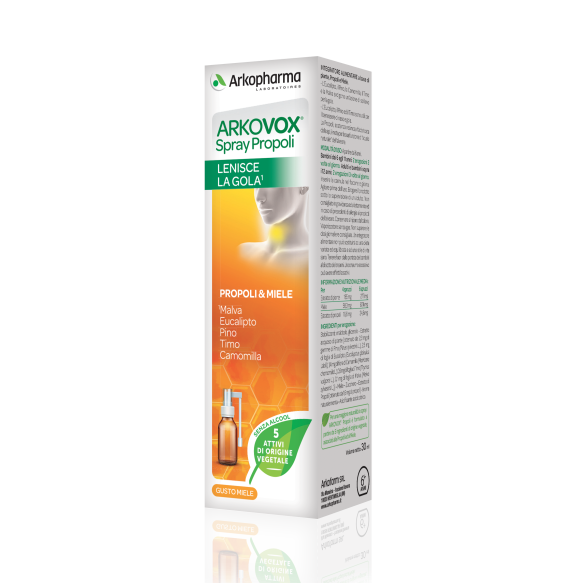 Arkovox® Propoli Spray è un integratore alimentare a base di piante, miele e propoli.