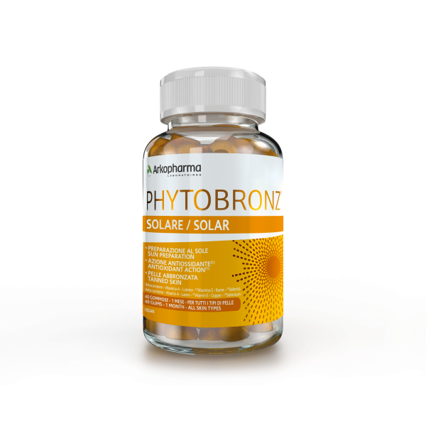 PHYTOBRONZ® SOLARE GUMMIES è un integratore alimentare a base di carotenoidi, 100% di origine vegetale e di piante, minerali e vitamine che: