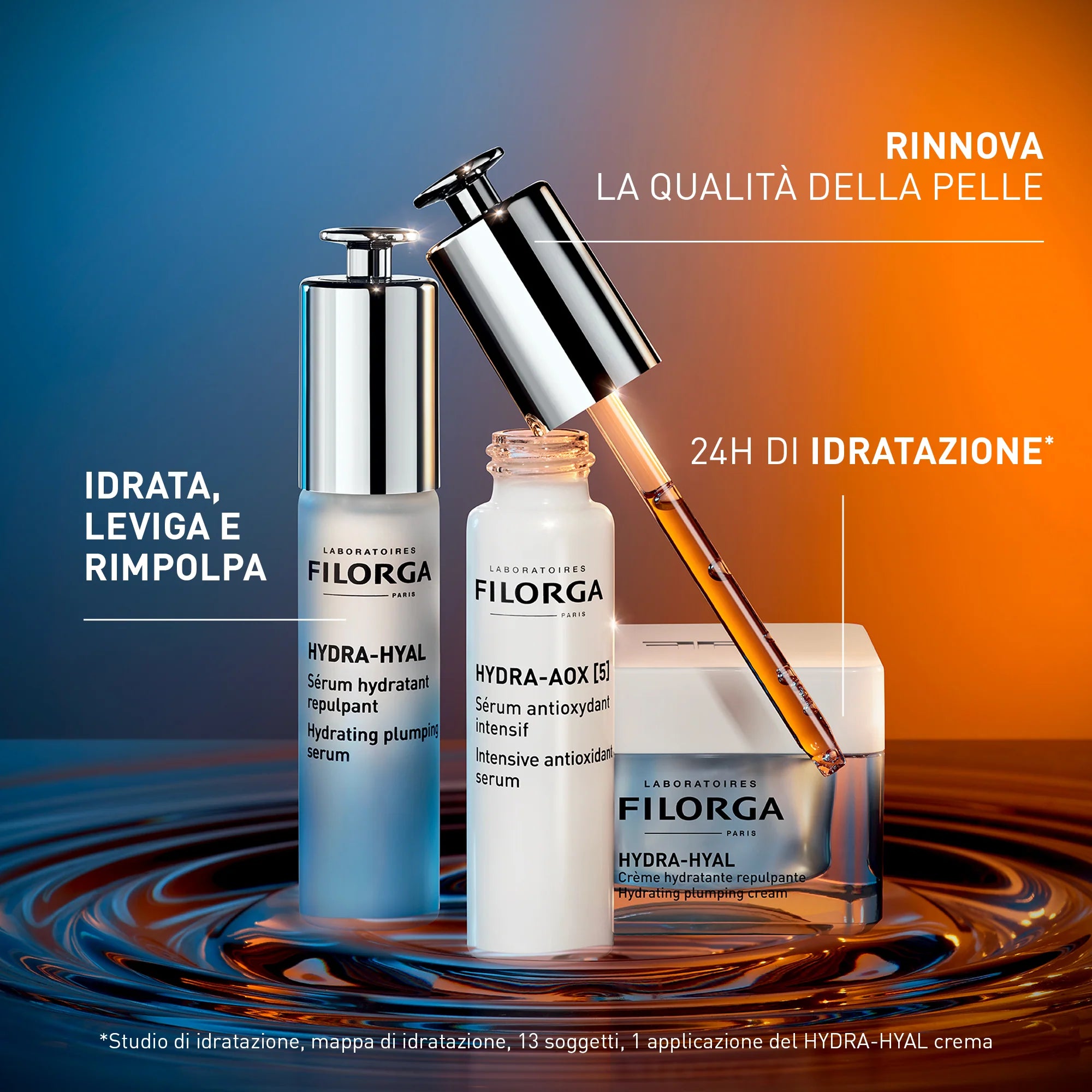 Dalla potenza degli antiossidanti e dall'expertise della medicina estetica, nasce HYDRA-AOX [5] per una pelle che appare più giovane e luminosa, più a lungo; un blending di 5 potenti antiossidanti in una formula esclusiva che agisce sui segni del tempo.