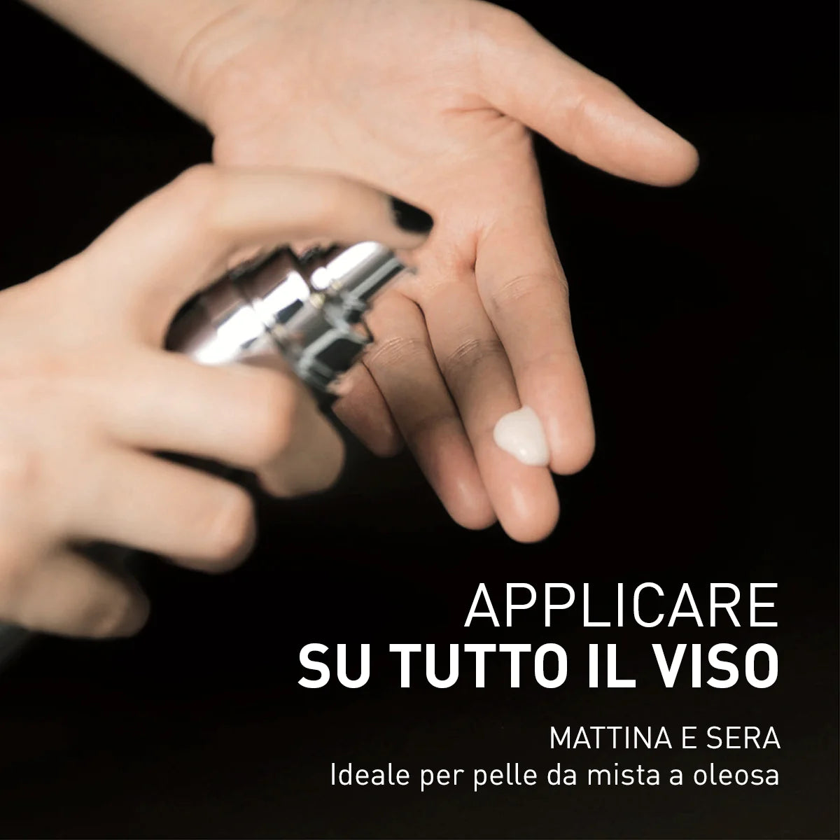Formula arricchita con un complesso perfezionatore anti-effetto lucido + pori ridotti.