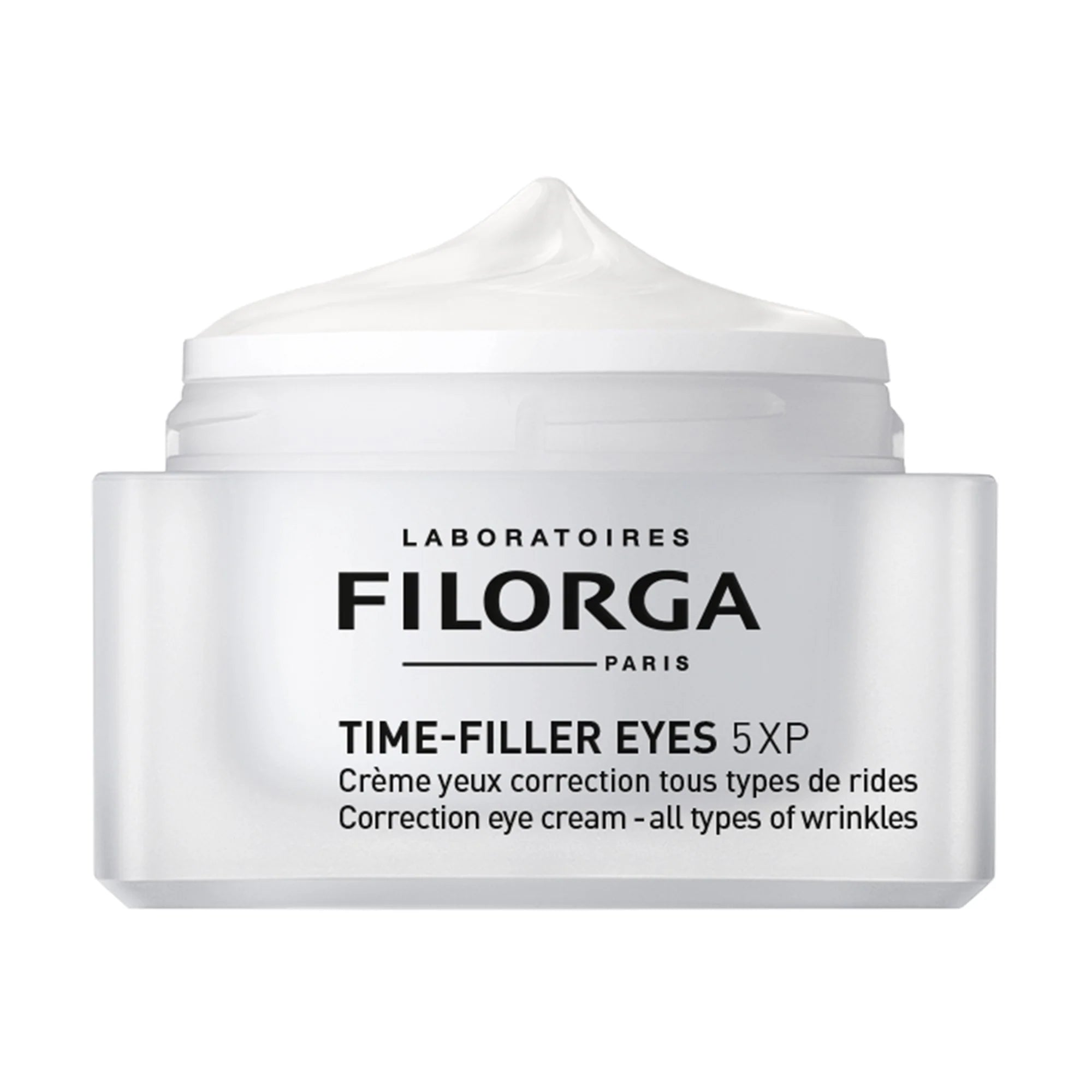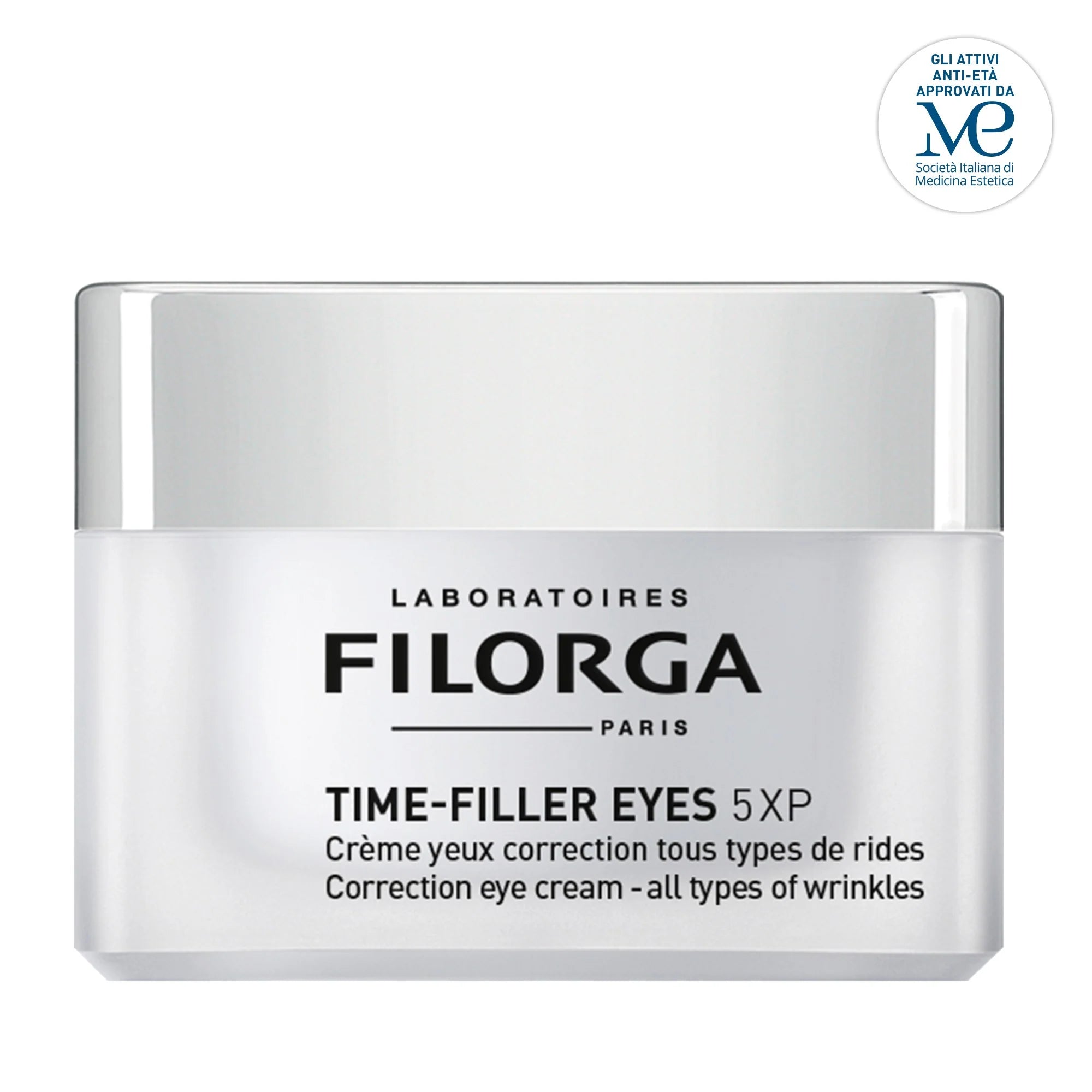 Crema contorno occhi correzione rughe che agisce contemporaneamente su 5 segni del contorno occhi: zampe di gallina, rughe sotto gli occhi, rughe di espressione, pieghe palpebrali, occhiaie.